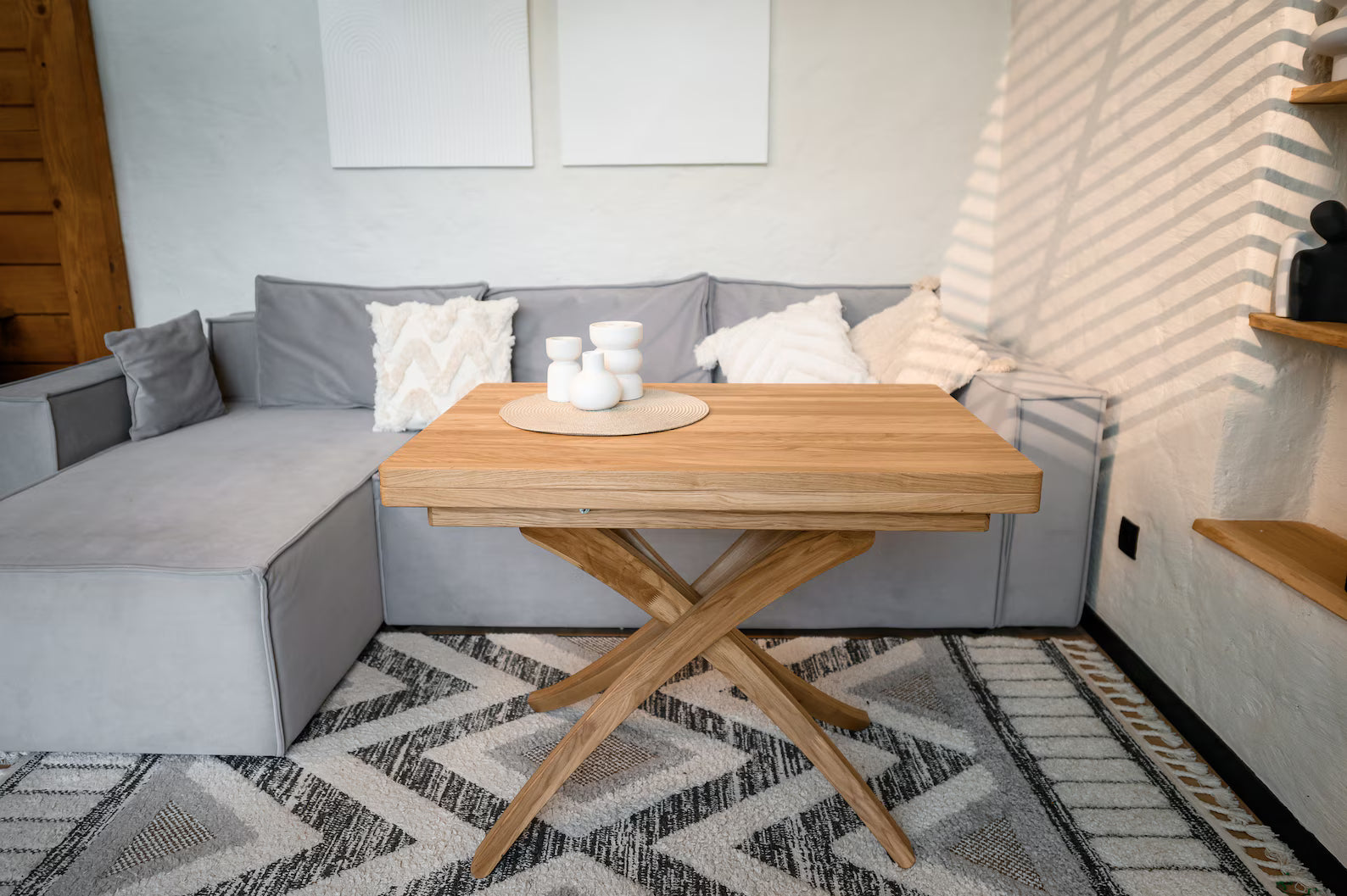 What truly sets this table apart is its unlimited height adjustability — easily transforming from a low coffee table to a full dining surface, offering comfort and versatility for any space.